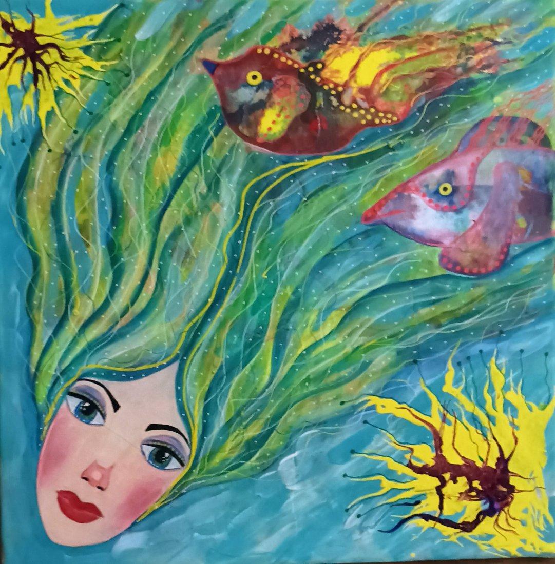 Originální malba akrylovými barvami na lněném plátně. Použity akrylové fixy.