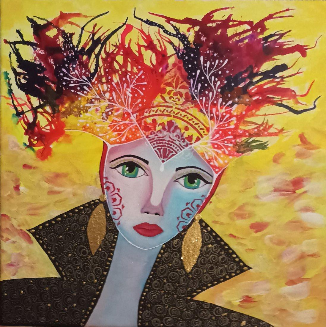 Originální malba akrylovými barvami na lněném plátně. Použité akrylové inkousty.