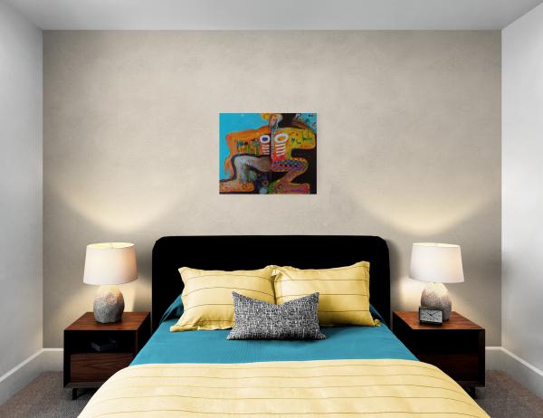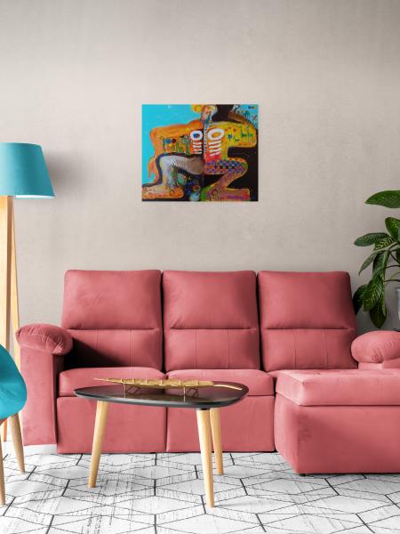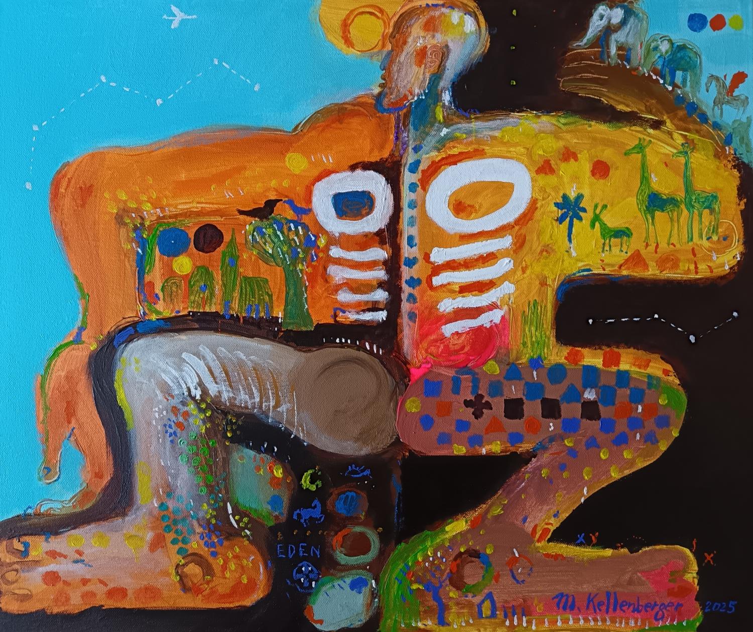 Plátně dominuje velká postava zosobňující člověka (každého), který je de facto pánem světa a stvoření, protože je svými činy výrazně ovlivňuje. Někdy v dobrém, jindy ve špatném...