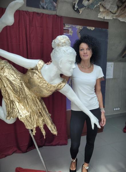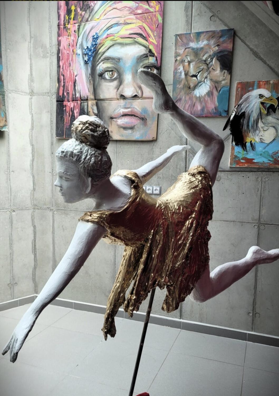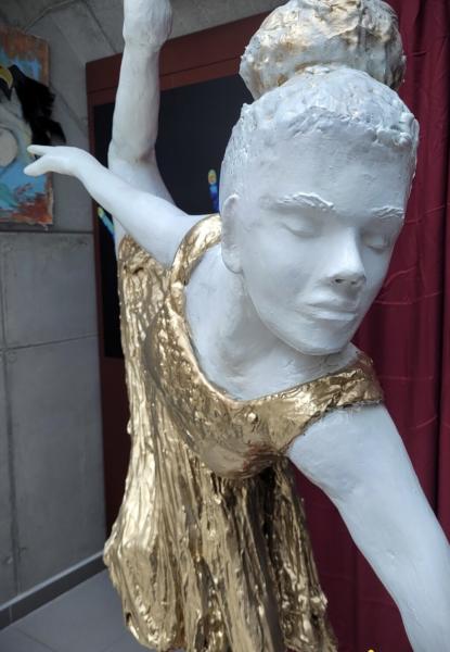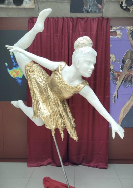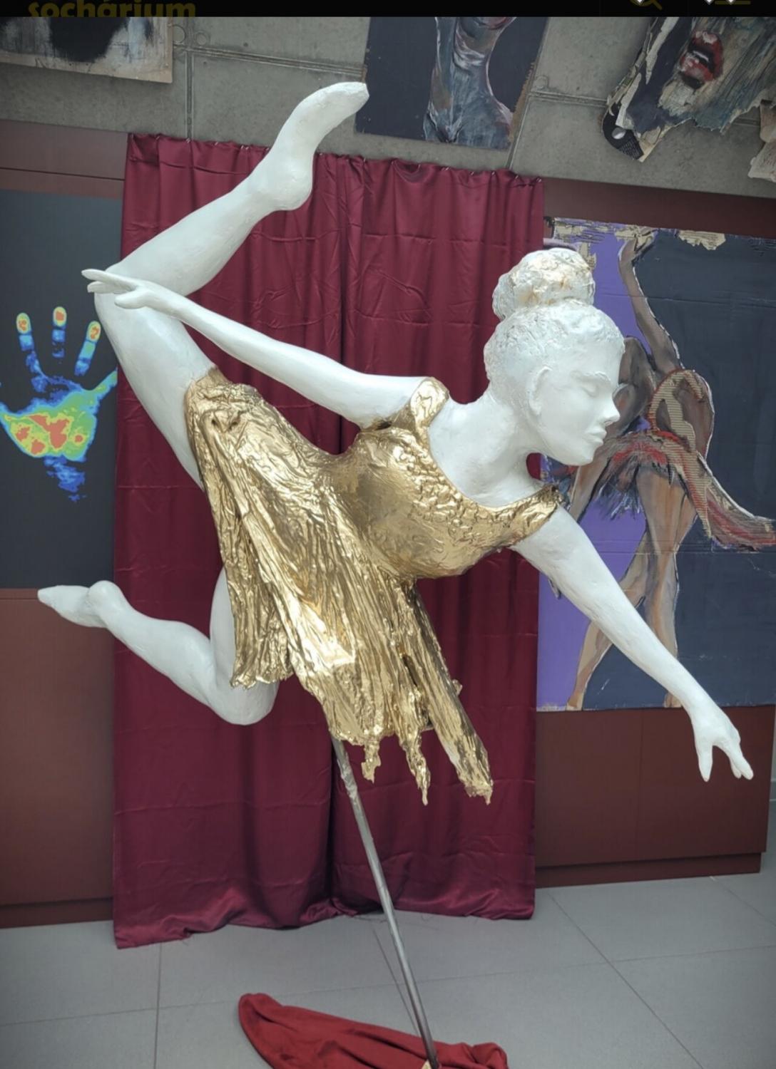 Socha znázorňuje baletku v momentu absolutního vyvážení – tělo natažené do prostoru, prsty rukou i nohou zachycují pomíjivý okamžik lehkosti, který jako by se právě zvedl z jeviště a zamrzl v čase.