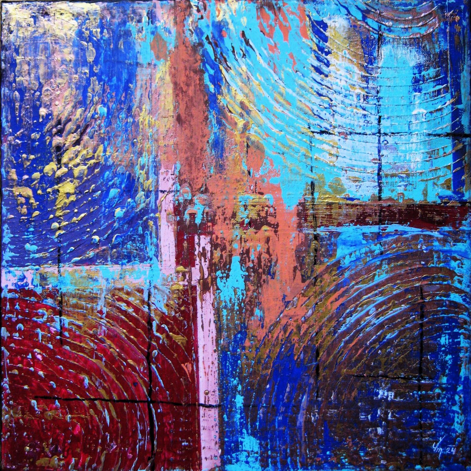 Plátno na rámu, akryl se strukturou, ošetřen lakem s ÚV filtrem. Signováné na druhé straně.